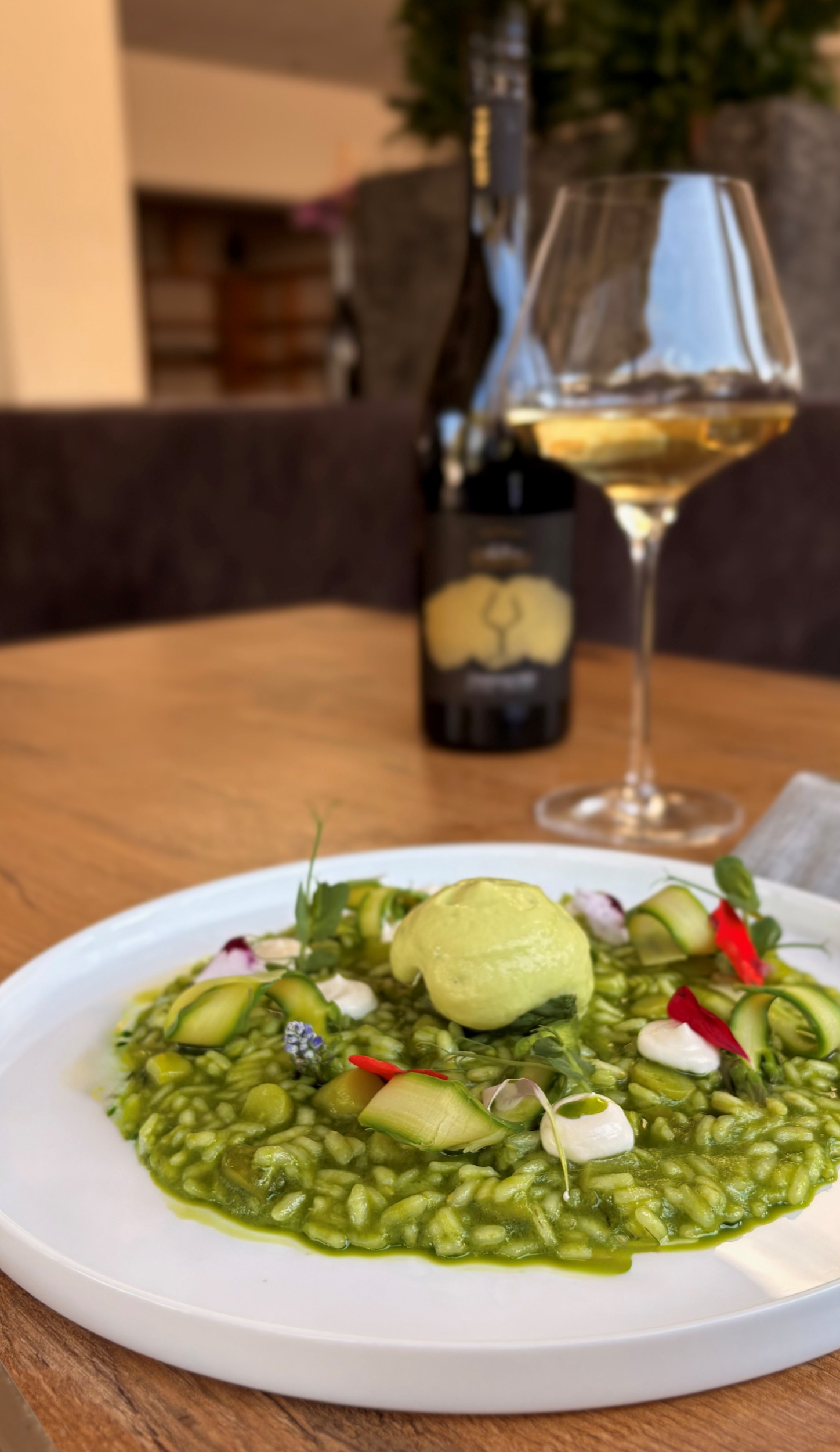 Darf bei uns nicht fehlen: natürlich ein, zwei oder drei Gläser ausgezeichneter Wein, auch aus eigenem Anbau.