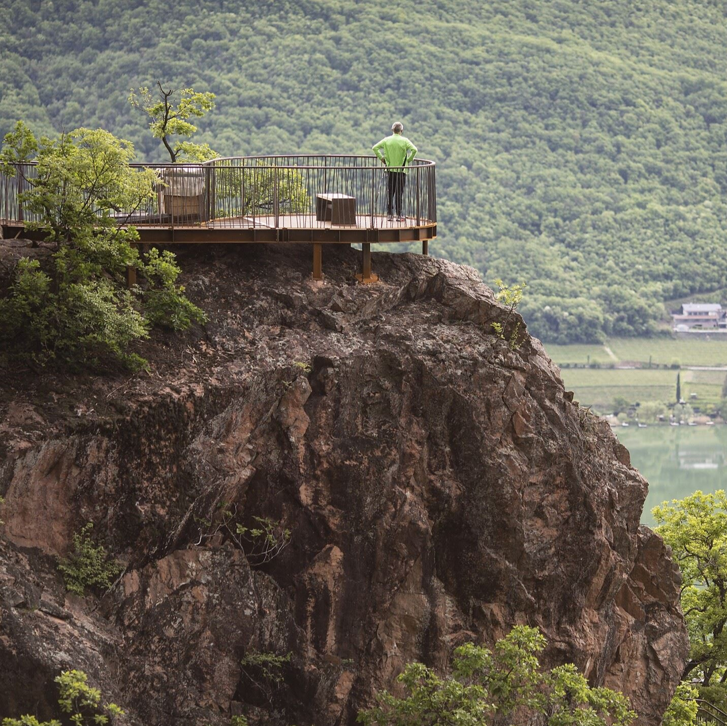 Hoch oben und ringsum thronen mächtige Bergriesen. Je nach Perspektive tun sich die verschiedensten Ausblicke auf: am höchsten Punkt der Weitblick auf die Gipfel des Hirzer, Ifinger, Rittner Horn, den Rosengarten und den Latemar. Ein alpines Bergglück. Dort die exotischen Palmen, Olivenbäume, Weinreben, der beliebte Kalterer See und Apfelplantagen. Ein mediterranes Paradies. Und mittendrin? Eine traditionsreiche, vom Wein geprägte Kulturlandschaft, in welcher sich allerlei entdecken lässt!
